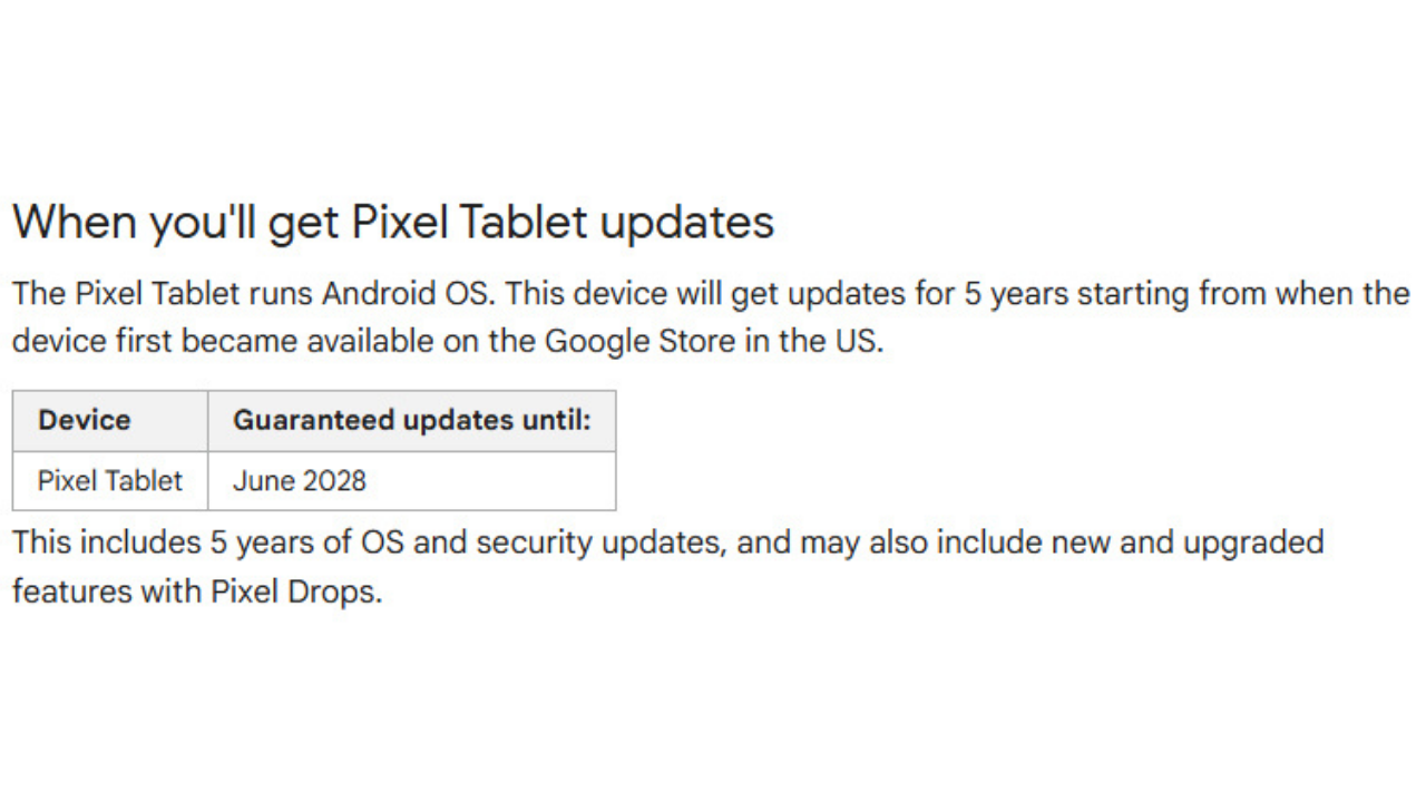 Google, Pixel Tablet modelini ilk piyasaya sürdüğünde üç yıl Android işletim sistemi yükseltmesi ve beş yıl güvenlik güncellemesi sözü vermişti. Ancak şirket, Ocak 2026 itibarıyla bu politikasında önemli bir değişikliğe gitti. Artık Pixel Tablet, tıpkı Google’ın yeni nesil telefonlarında olduğu gibi tam beş yıl boyunca Android işletim sistemi güncellemelerini almaya devam edecek.